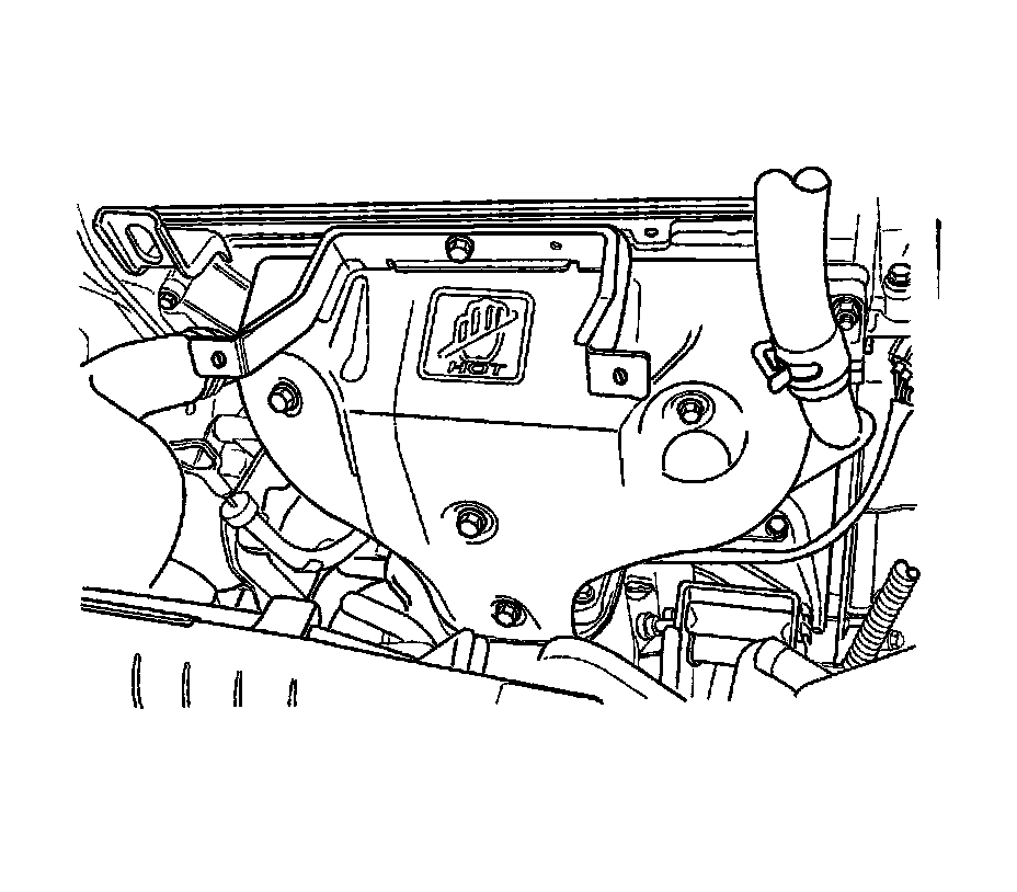 6. Install the exhaust manifold heat shield and heat shield bolts.