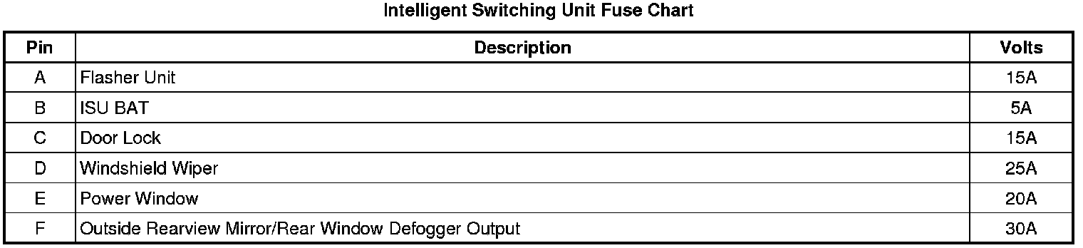 Intelligent Switching Unit Fuse Chart