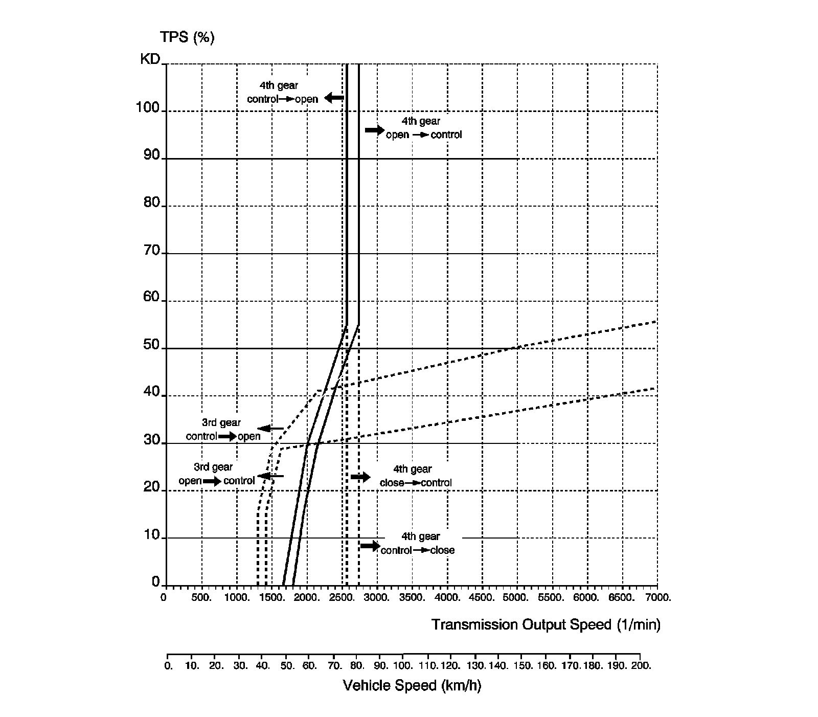 Lock-up Clutch Applied (Economic Mode; 3rd Gear, 4th Gear) - 2.0 DOHC