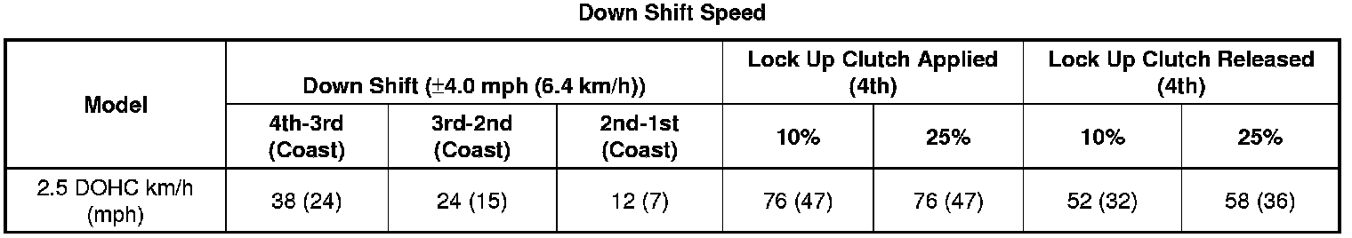 Lock-up Clutch Applied (Economic Mode; 3rd Gear, 4th Gear) - 2.5L DOHC