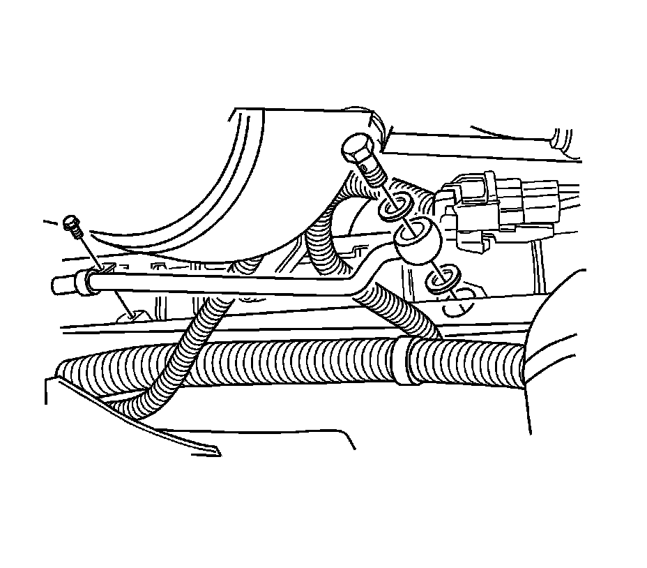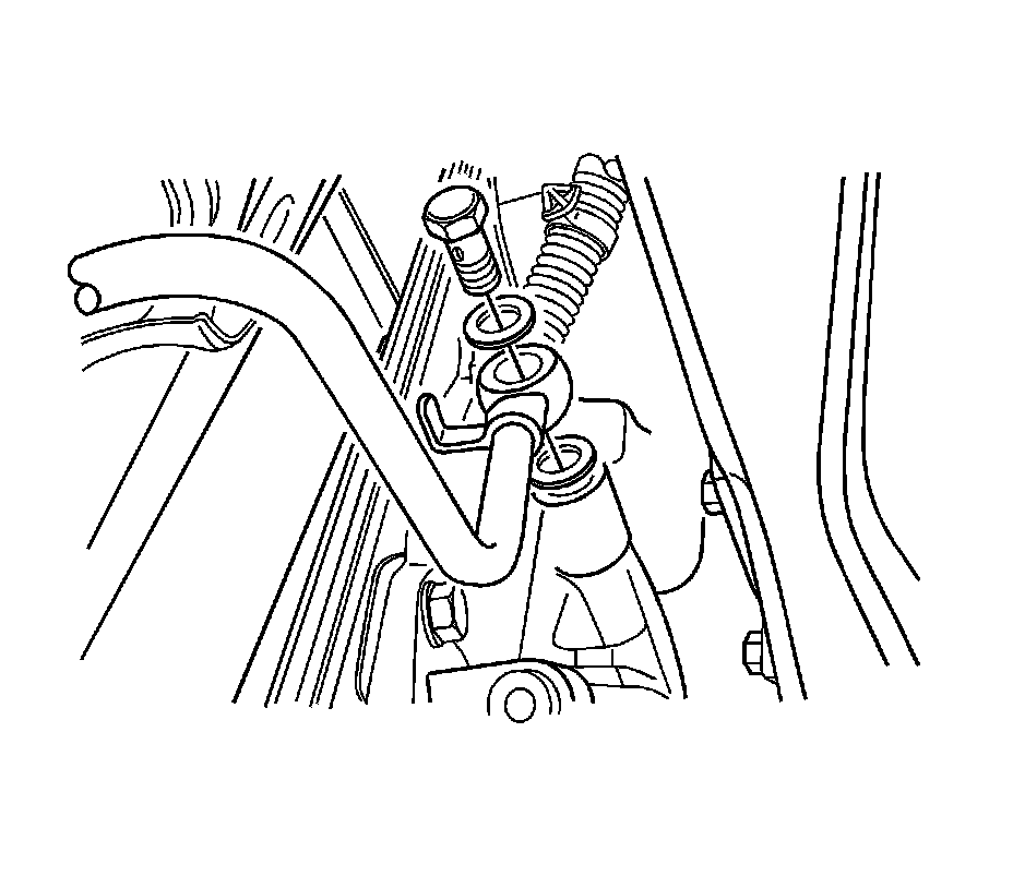 7. Remove the oil cooler inlet pipe bolt from the lower left side of the radiator.