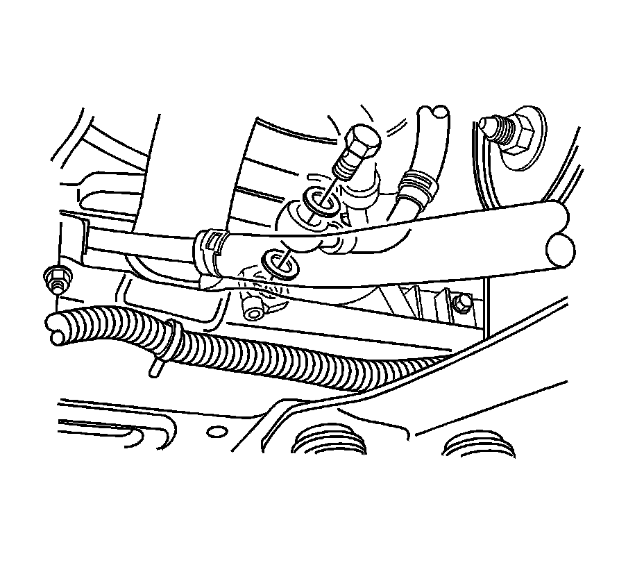3. Remove the oil cooler outlet pipe bolt from the lower right side of the radiator.