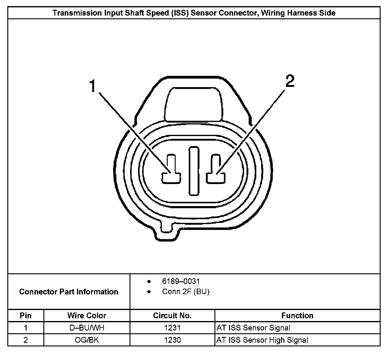 Transmission Input Shaft Speed (ISS) Sensor Connector, Wiring Harness Side: