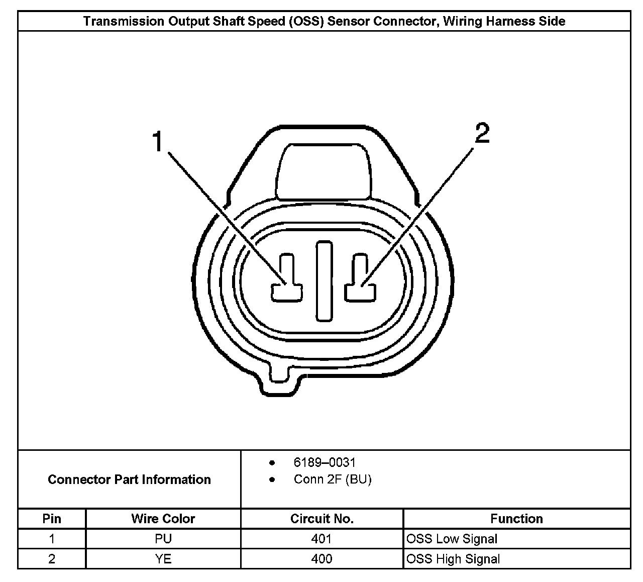 Transmission Output Shaft Speed (OSS) Sensor Connector, Wiring Harness Side: