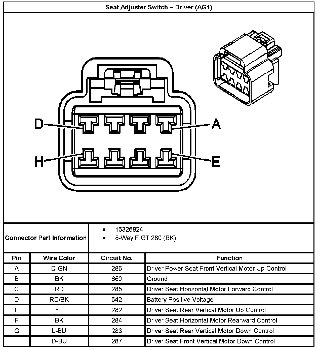 Seat Adjuster Switch - Driver (With RPO Code AG1):