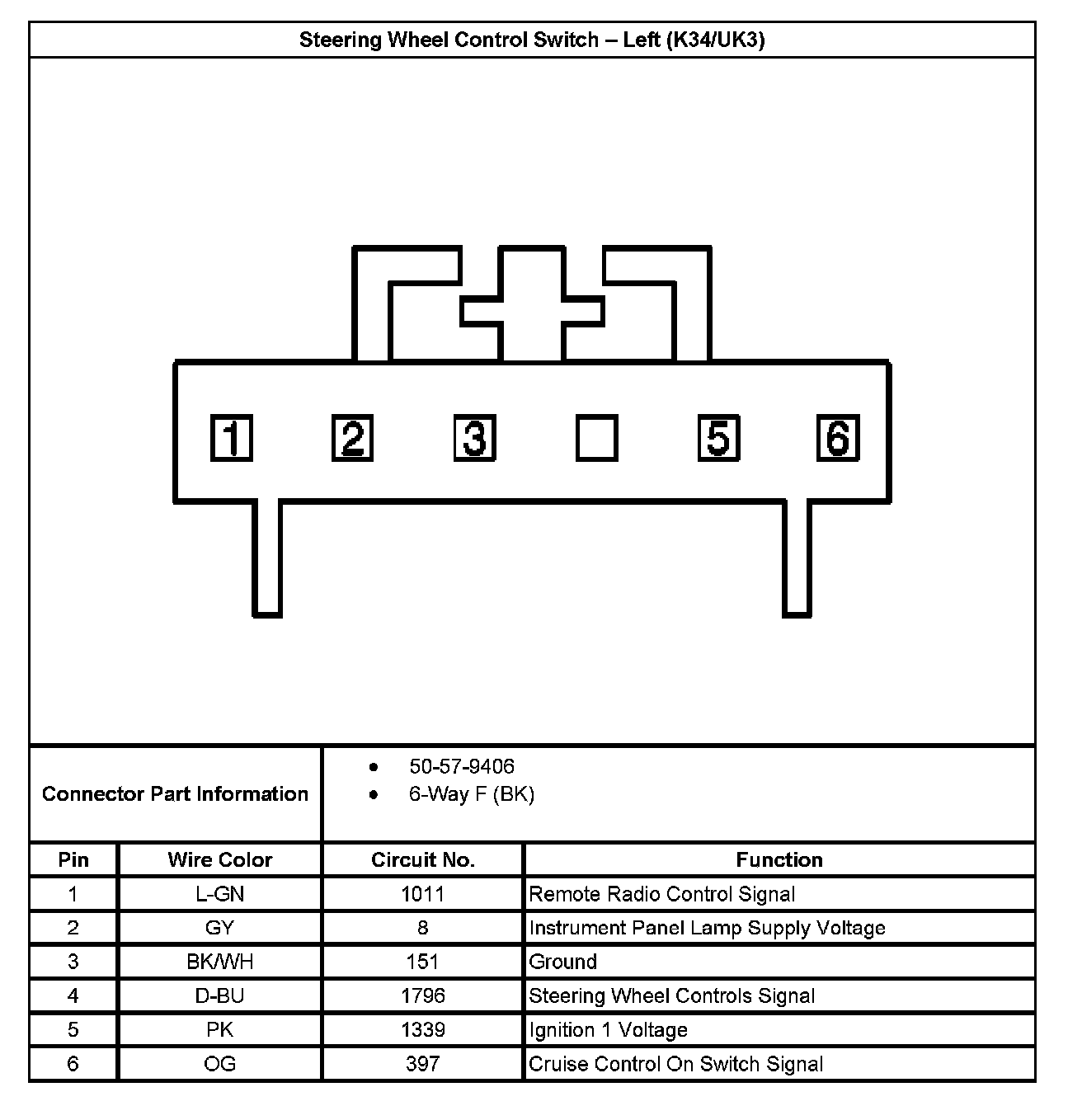 Steering Wheel Control Switch - Left (With RPO Code K34/UK3):