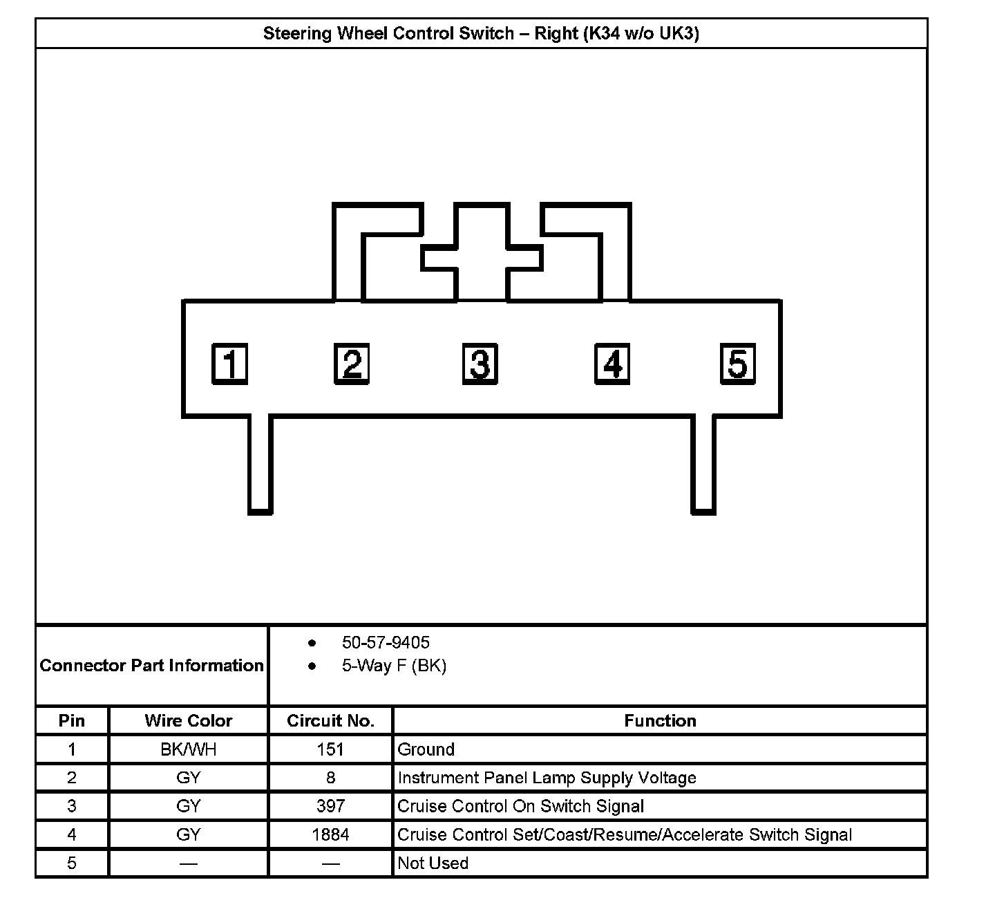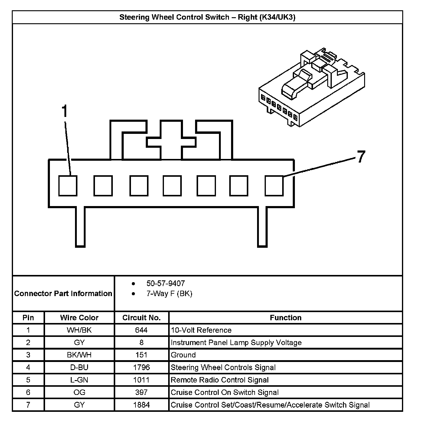 Steering Wheel Control Switch - Right (With RPO Code K34/UK3):