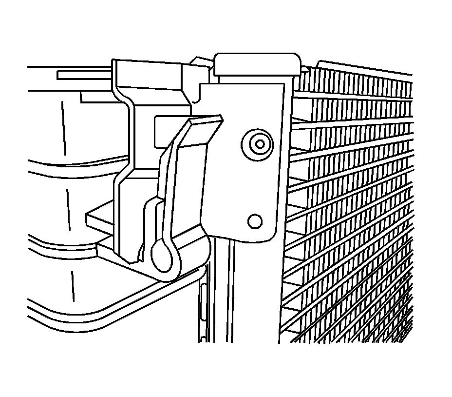 3. Install the condenser by guiding the tabs into the retention clips on the radiator.