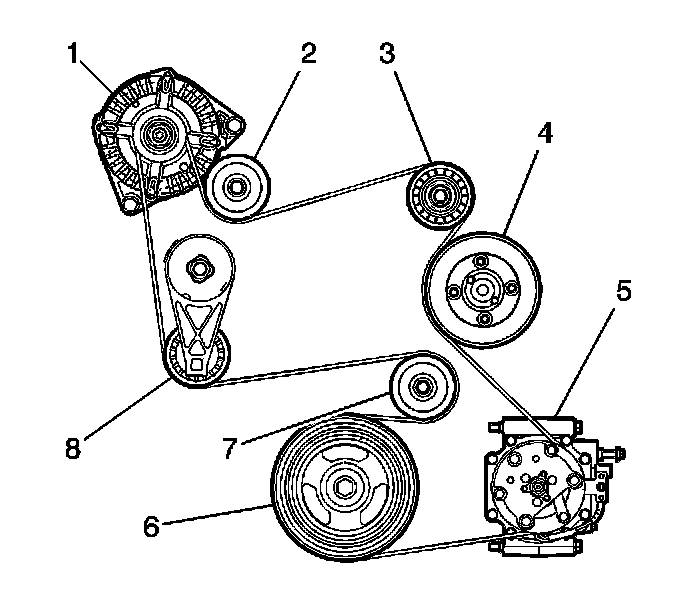 2. Using J 39914 rotate the drive belt tensioner (8) to release the tension on the drive belt.