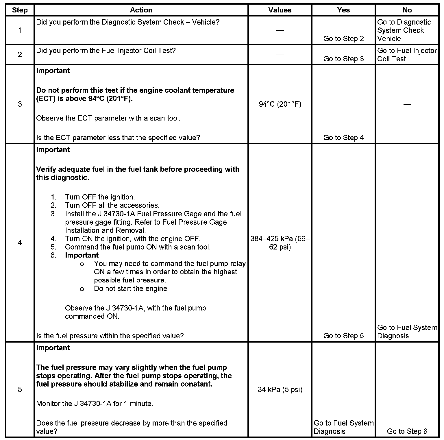 3. The engine coolant temperature (ECT) must be below the operating temperature in order to avoid irregular fuel pressure readings due to hot soak fuel boiling.