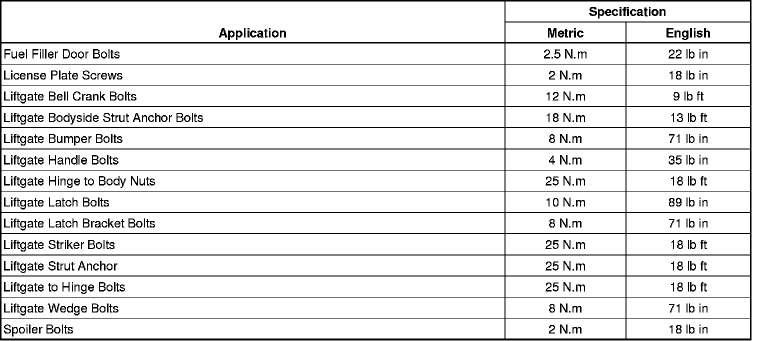 Fastener Tightening Specifications