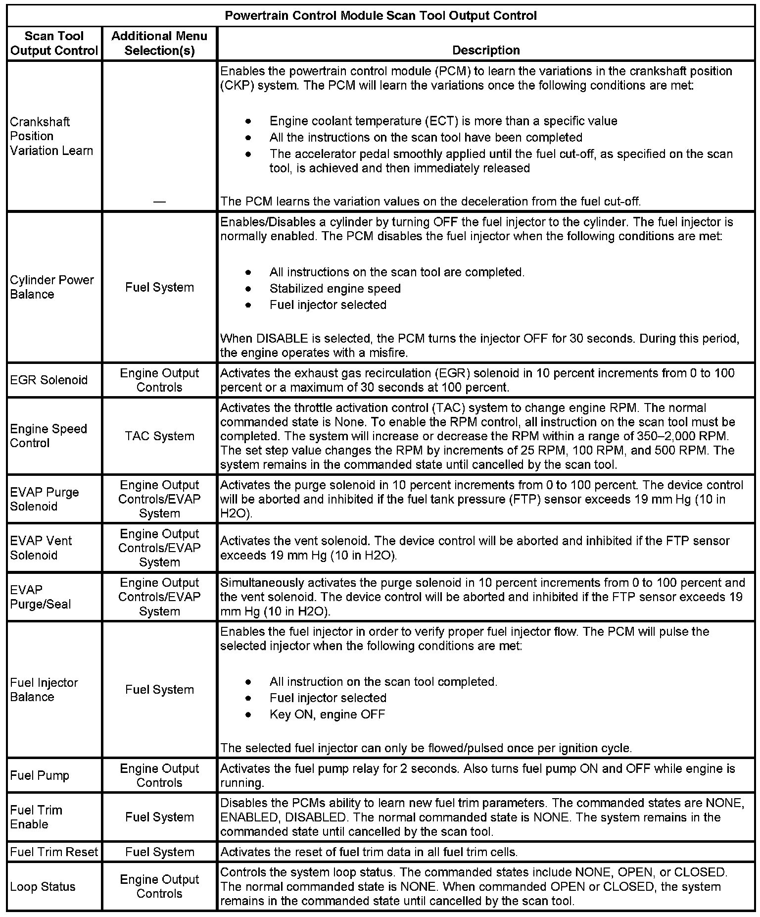 Powertrain Control Module Scan Tool Output Control Part 1: