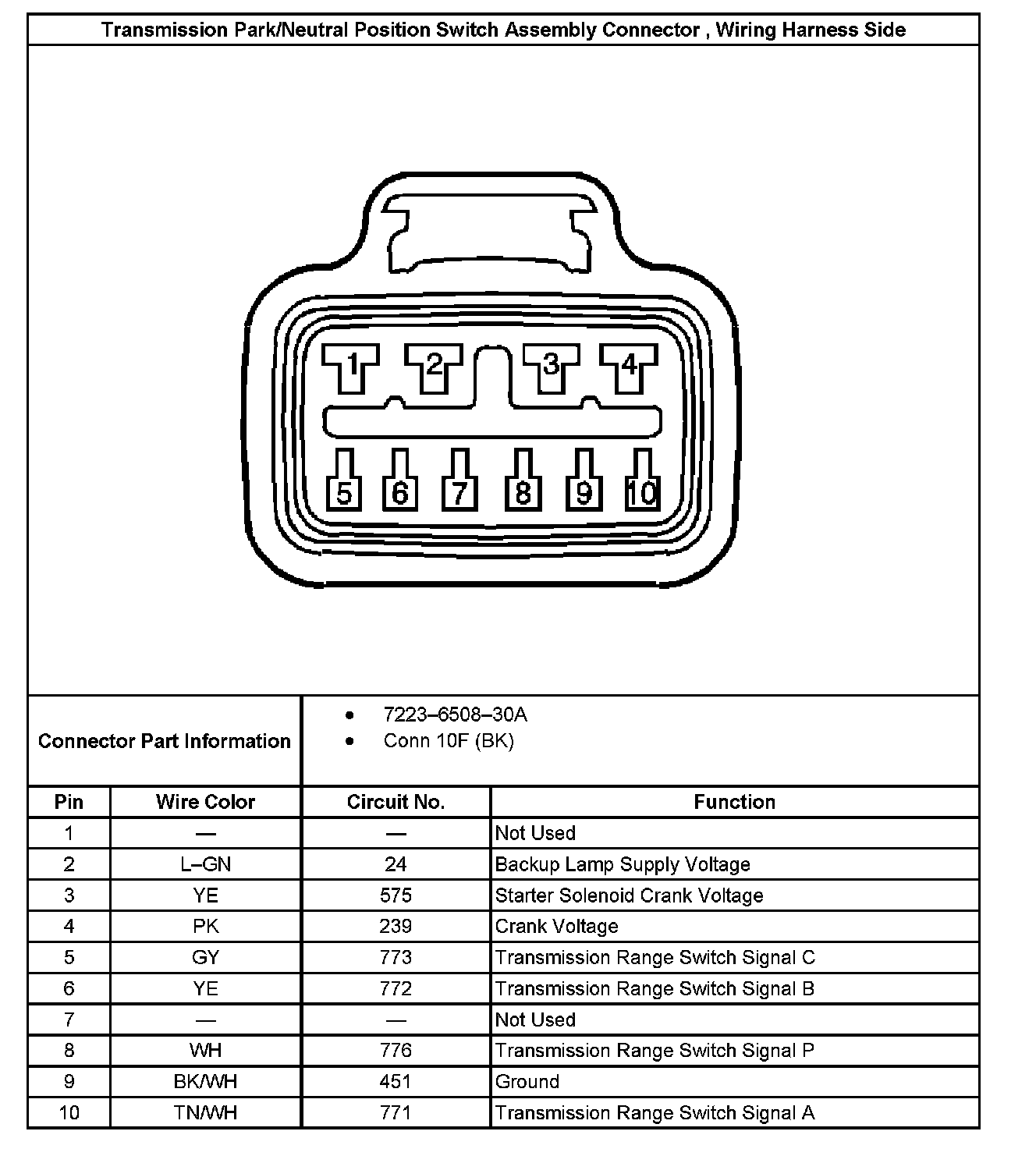 Transmission Park/Neutral Position Switch Assembly Connector , Wiring Harness Side: