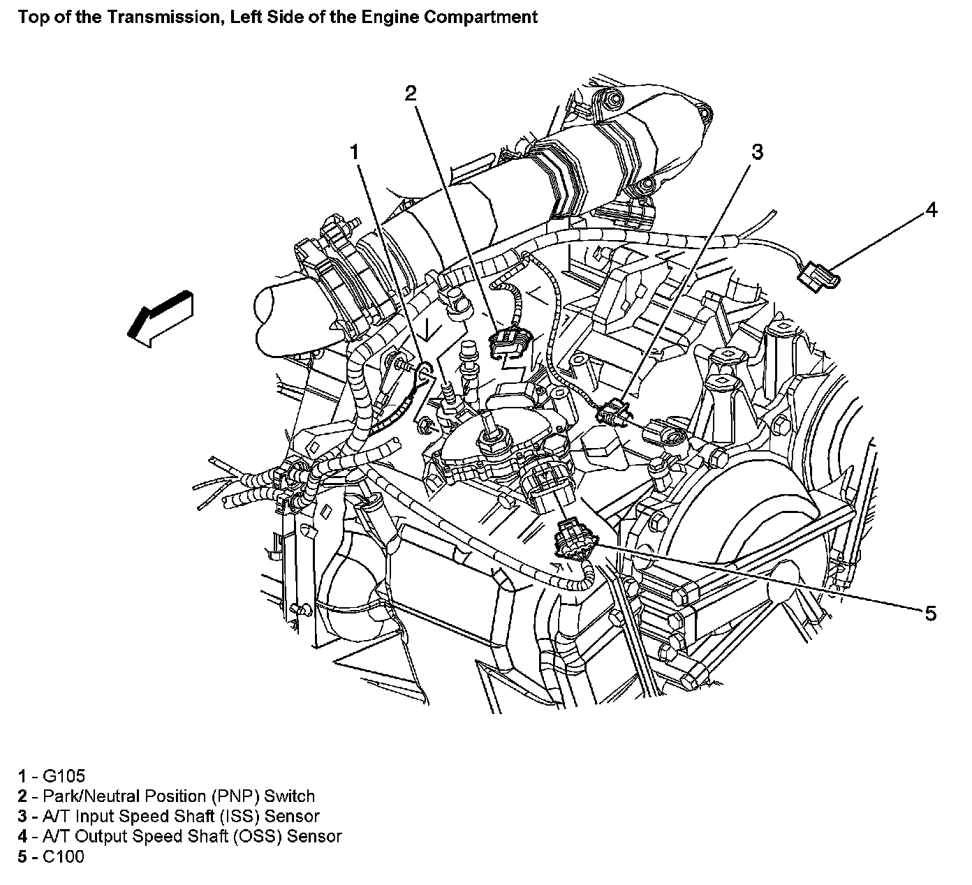 Top Of The Transmission, Left Side Of The Engine Compartment: