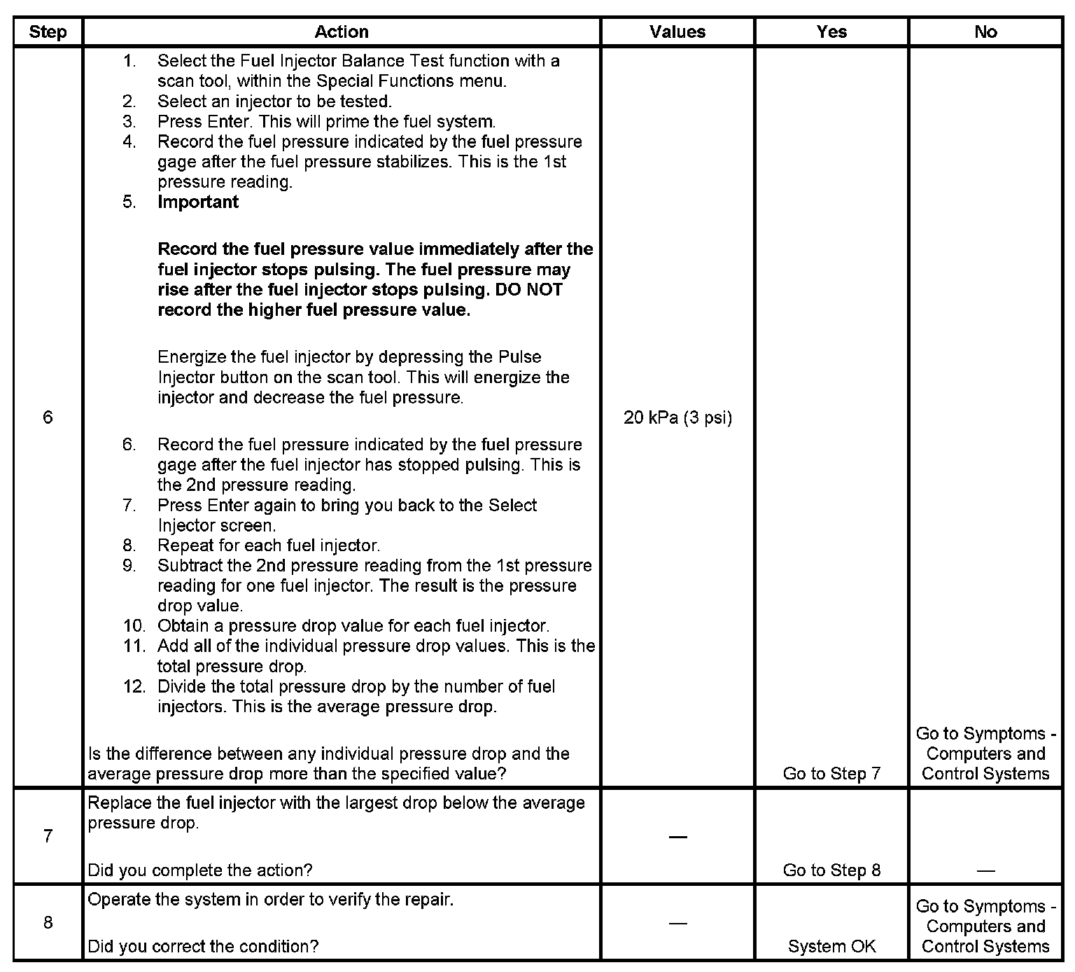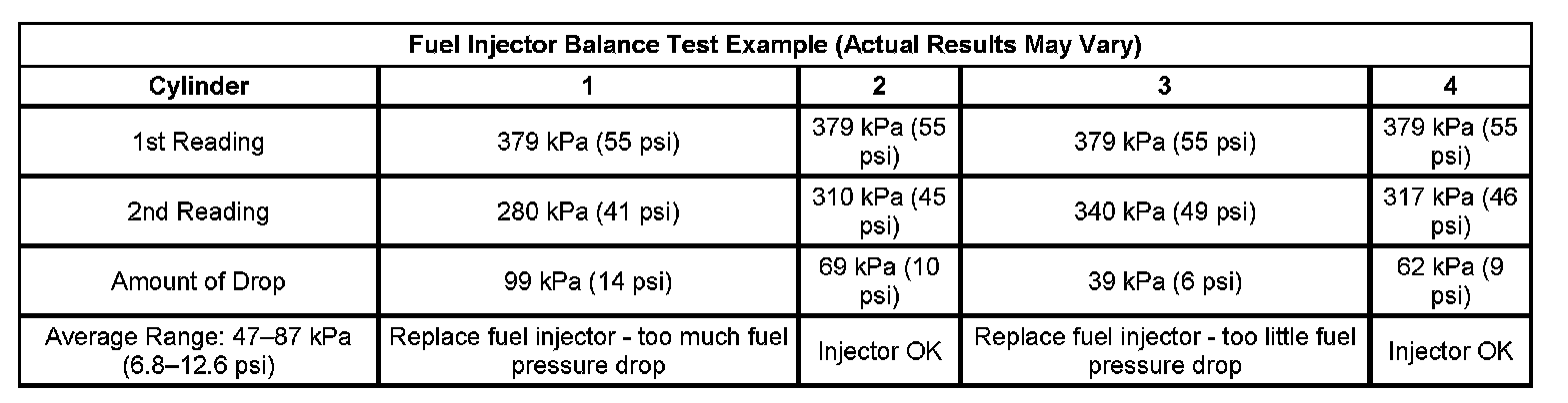Fuel Injector Balance Test Example (Actual Results May Vary):