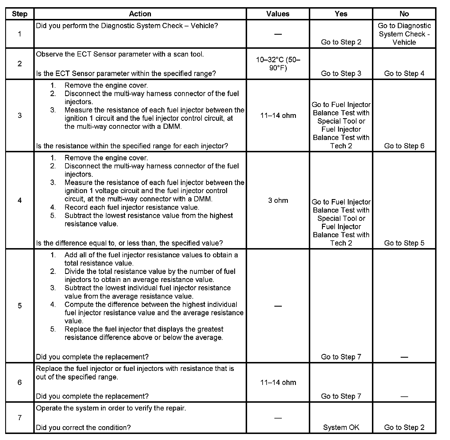 - Perform the fuel injector coil test within the conditions of the customer's concern. A fuel injector condition may only be apparent at a certain temperature, or under certain conditions.