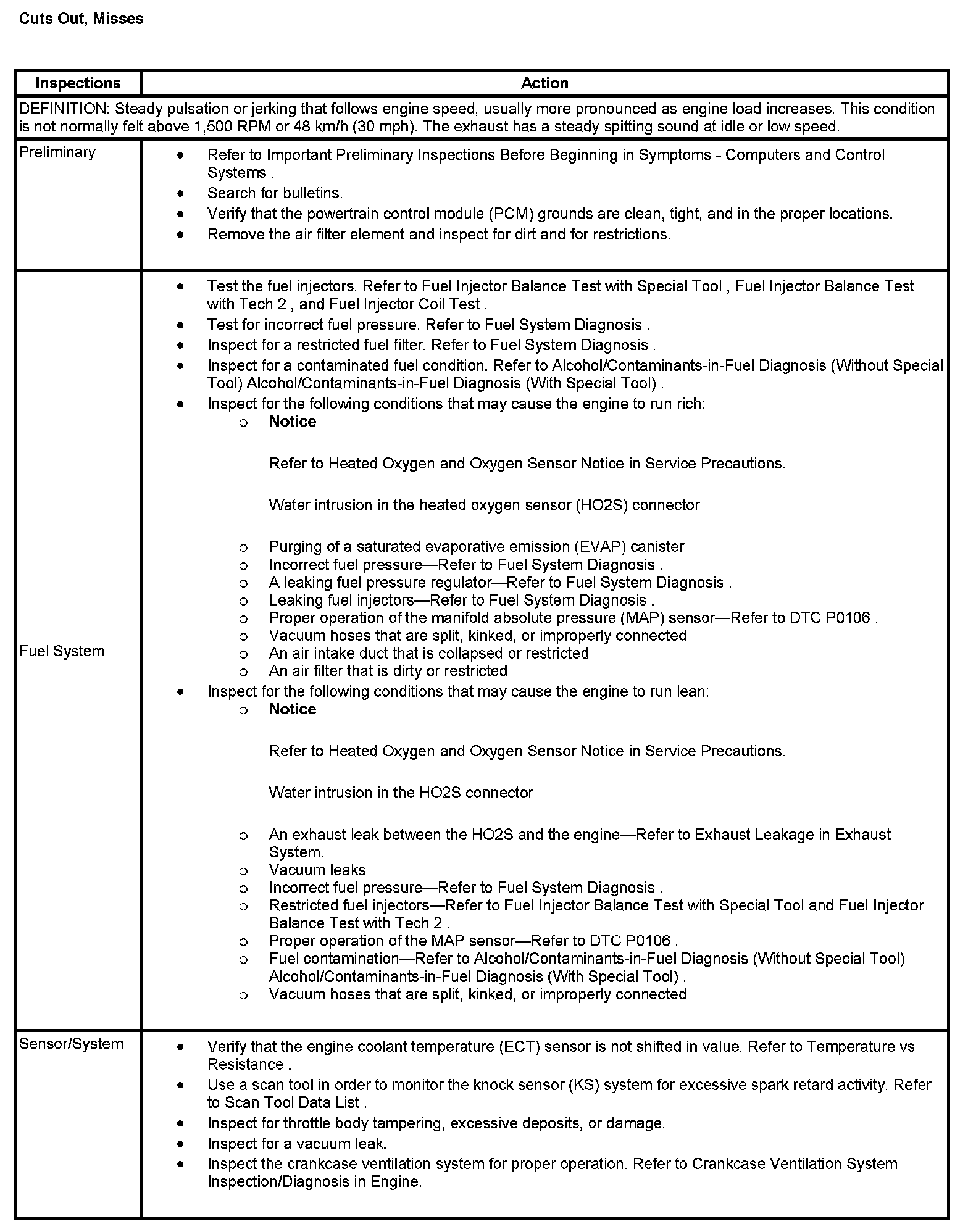 Cuts Out, Misses