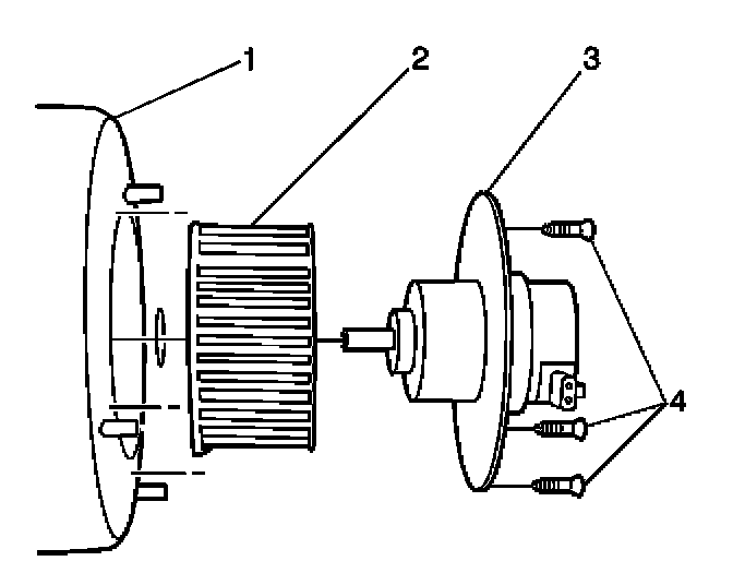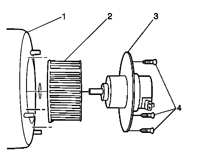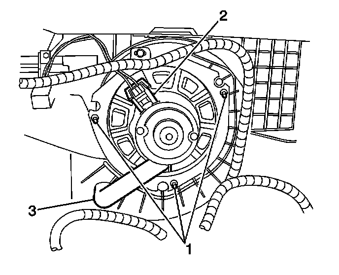 4. Remove the blower motor retaining screws (1).