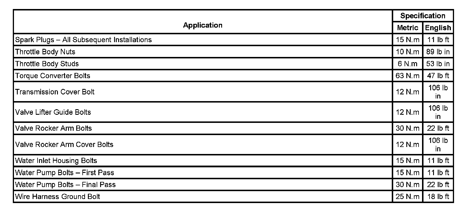 Fastener Tightening Specifications:
