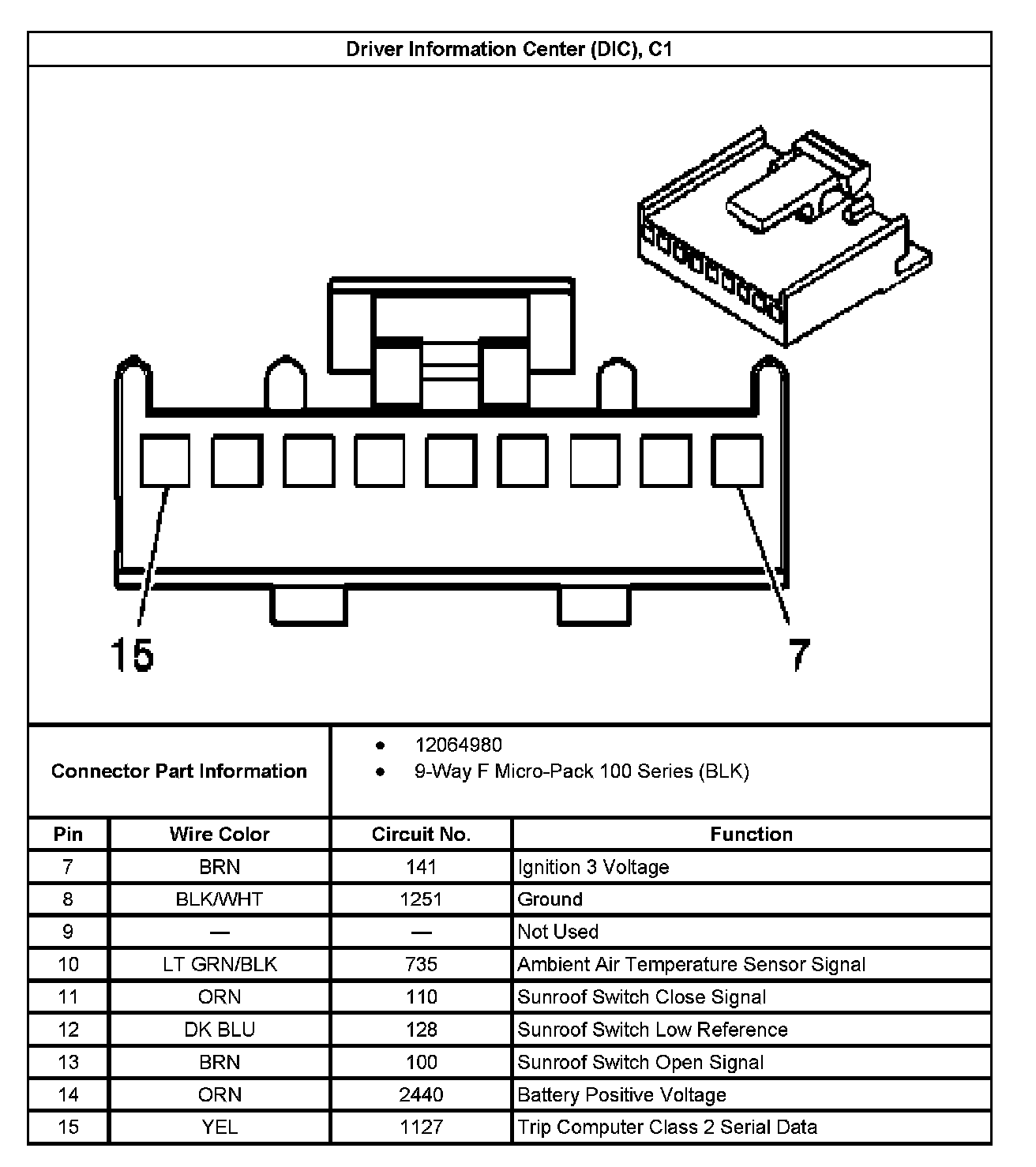Driver Information Center (DIC), C2 (With RPO Code CF5):