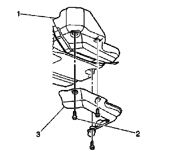 9. Remove the fuel tank shield push pins (2) and the fuel tank shield (3).