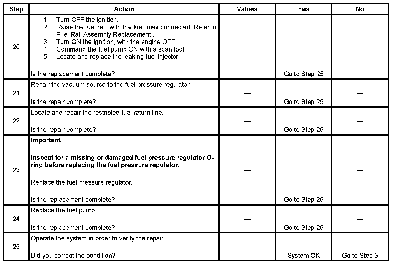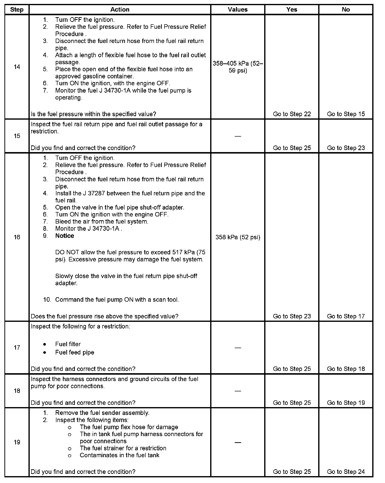 18. This step verifies that a circuit condition is not the cause of a fuel pressure concern. Inspect all fuel pump electrical circuits thoroughly.
