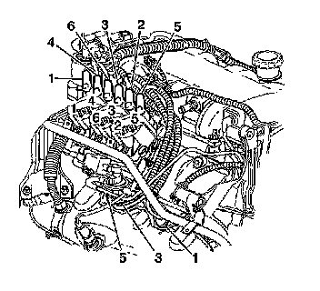 3. Install the spark plug wires 1, 3, and 5 to the engine right side spark plugs.