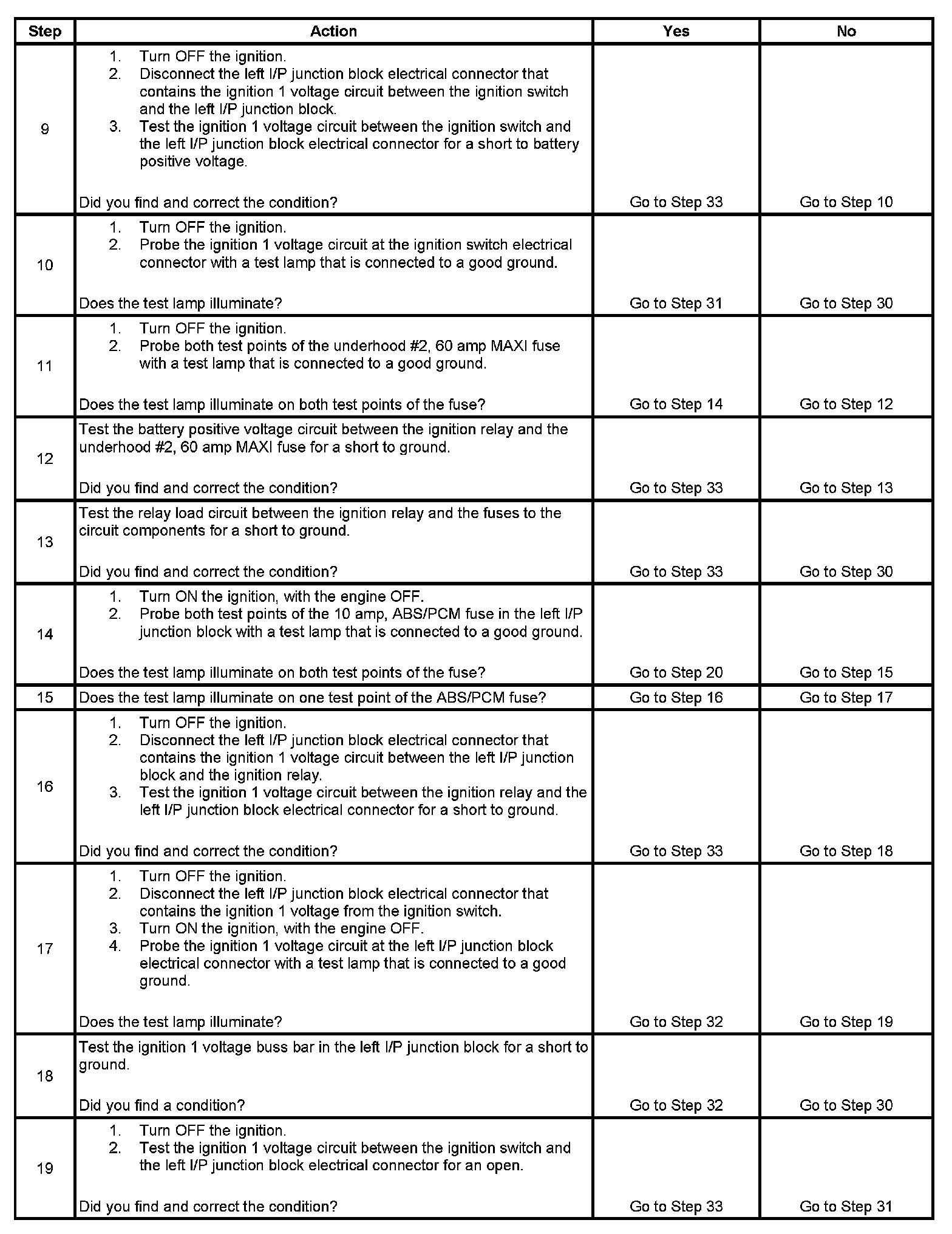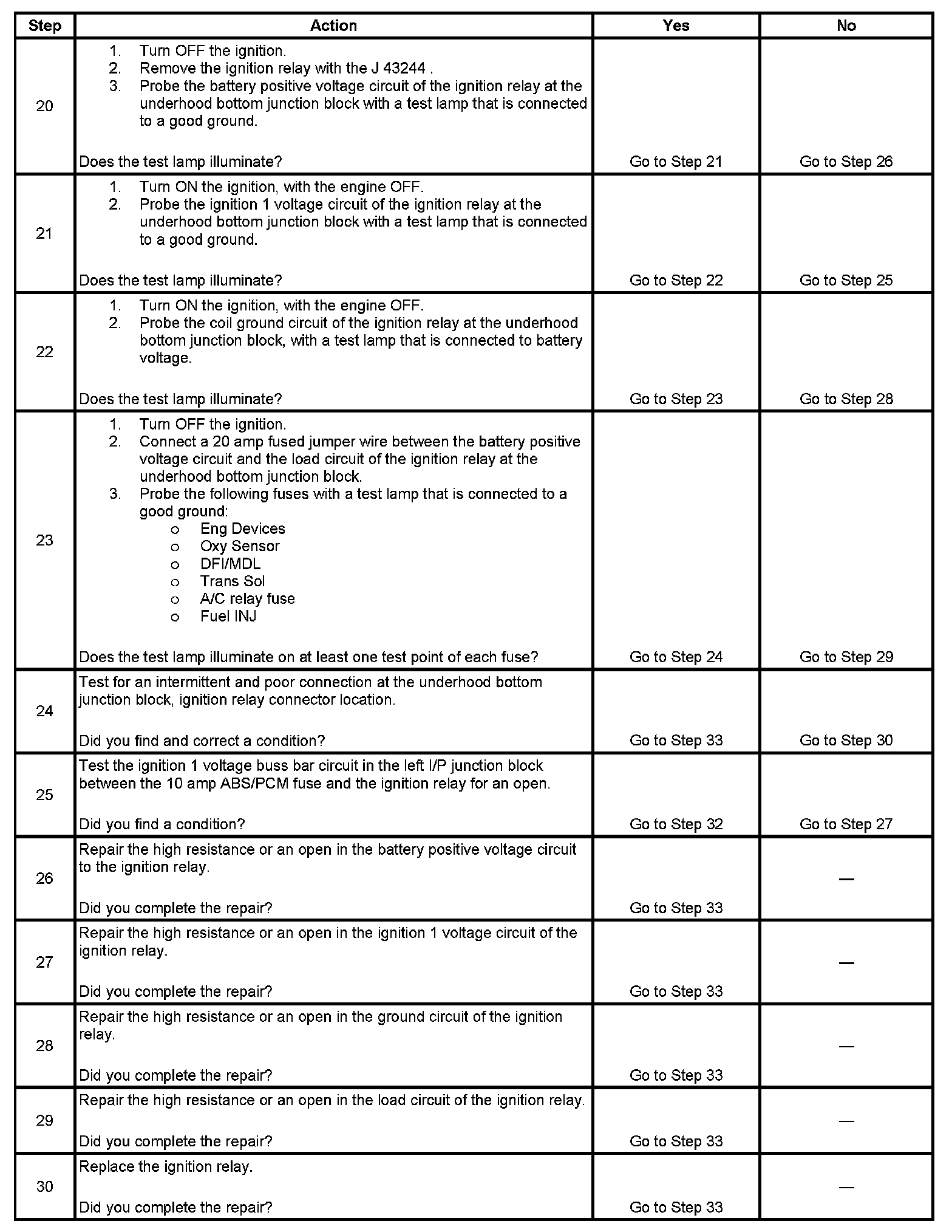The ignition relay table assumes that the vehicle battery is fully charged. Refer to Battery Inspection/Test in Starting and Charging. Battery Inspection/Test