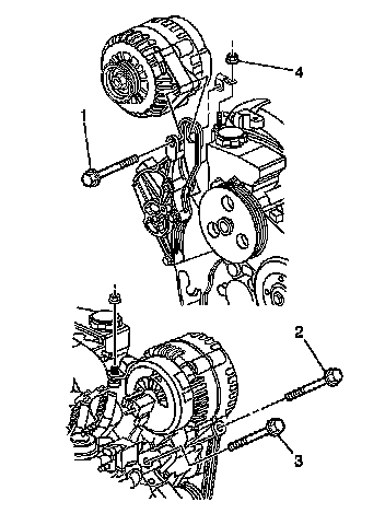 1. Tighten the generator pivot bolt (1) to 50 N.m (37 lb ft).