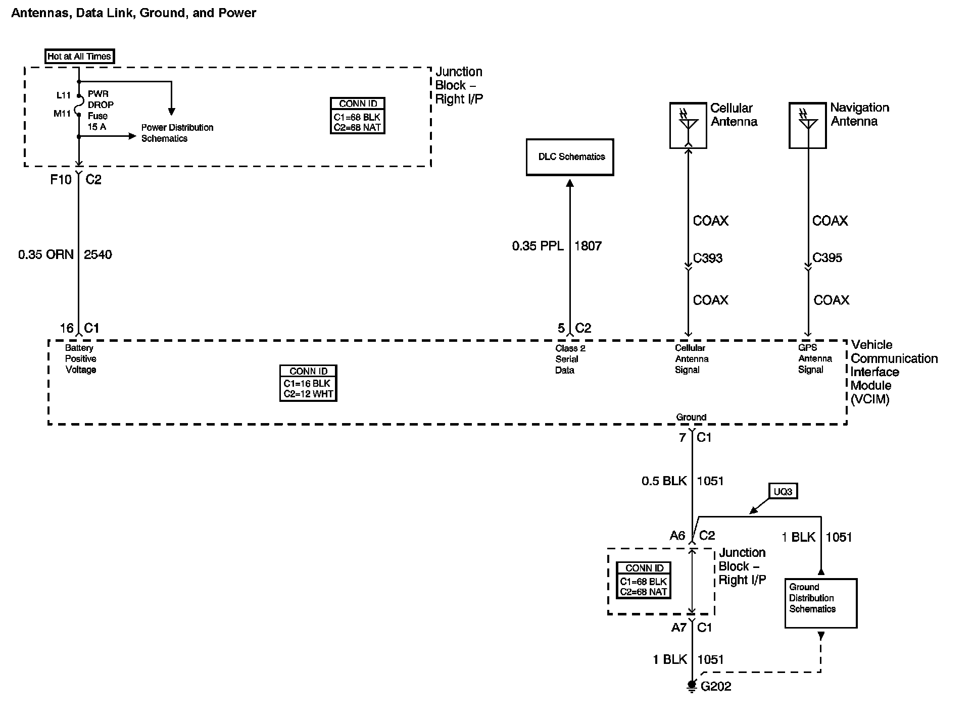 The locations for the Connectors, Grounds, Splices, and grommets shown within these diagrams can be found via their numbers at vehicle locations.