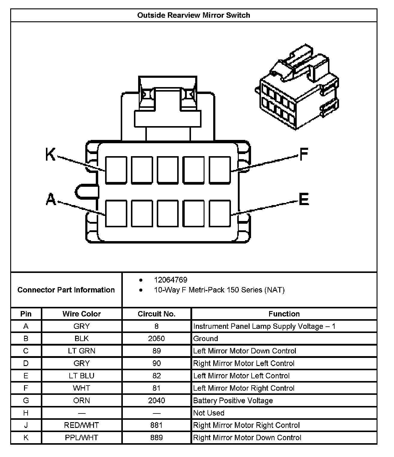 Power Mirror Switch: Diagrams