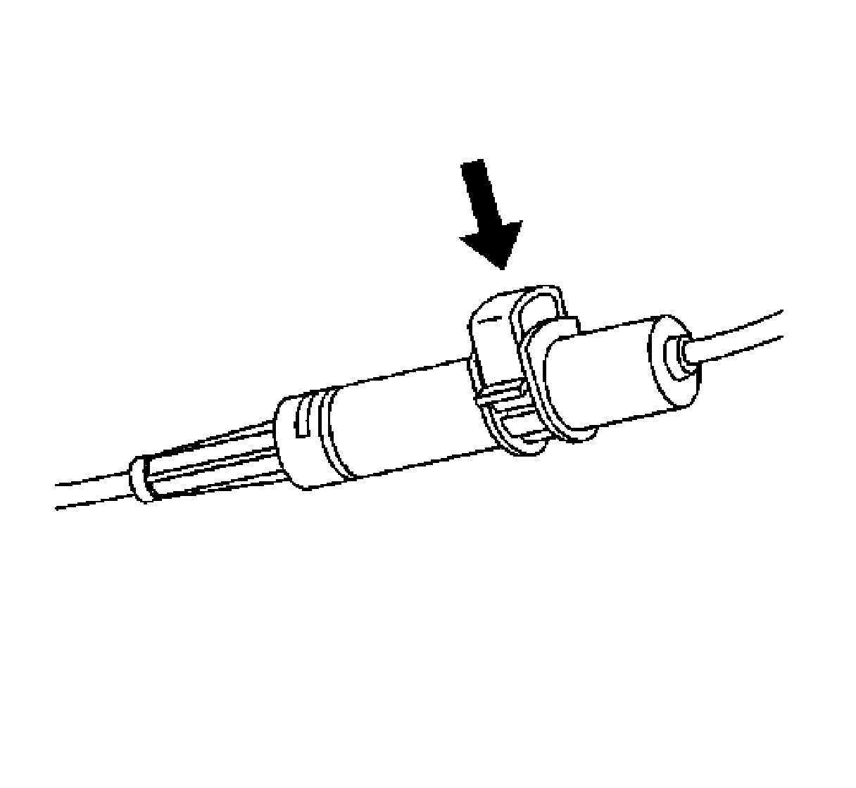 17. Depress the adjuster clip once. This mobilizes the adjuster housing toward the transaxle end fitting.