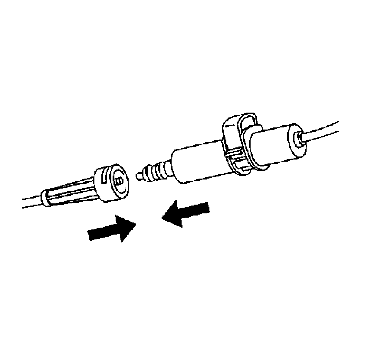 ^ Use the molded end fittings to push the metal end fitting of the shift control cable and the transaxle cable end together until the metal post snaps into place.