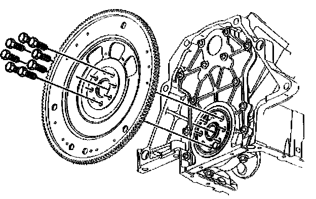 3. Loosen the 8 engine flywheel bolts.