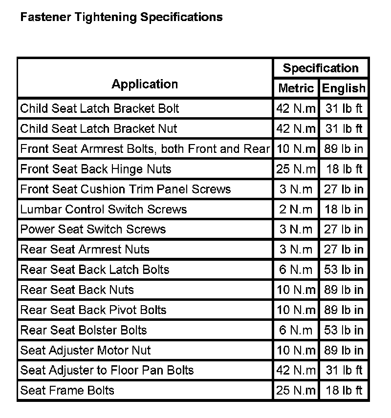 Seats: Specifications