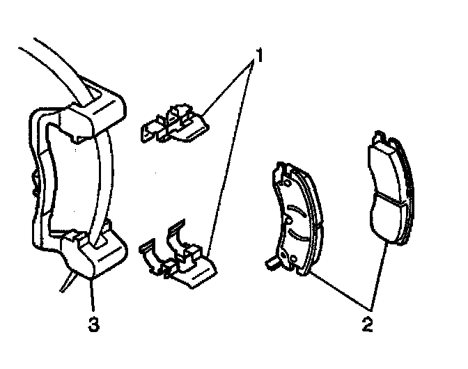 3. Remove the brake pad retainers (1) from the brake caliper bracket.
