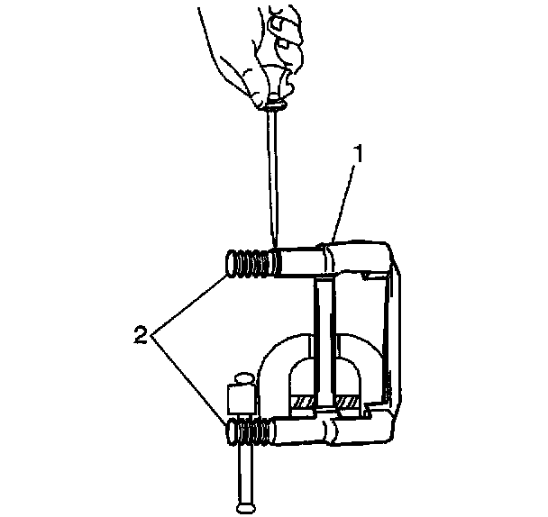 4. Install the brake pad retainers (1) to the caliper bracket.