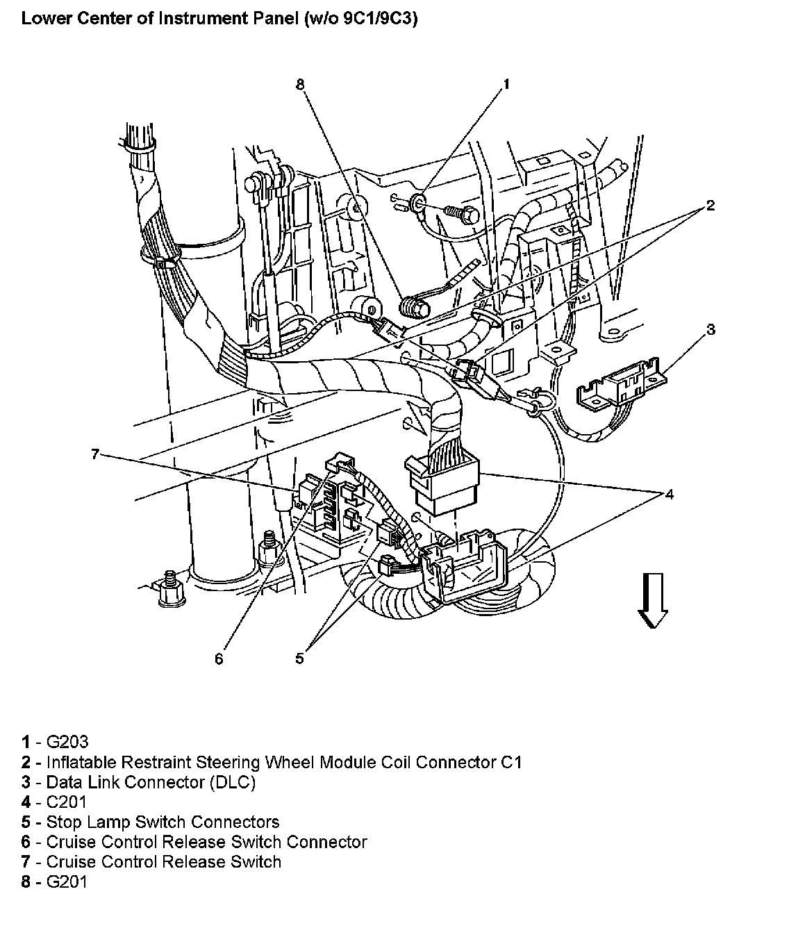 Lower Center Of Instrument Panel (Without RPO Code 9C1/9C3):
