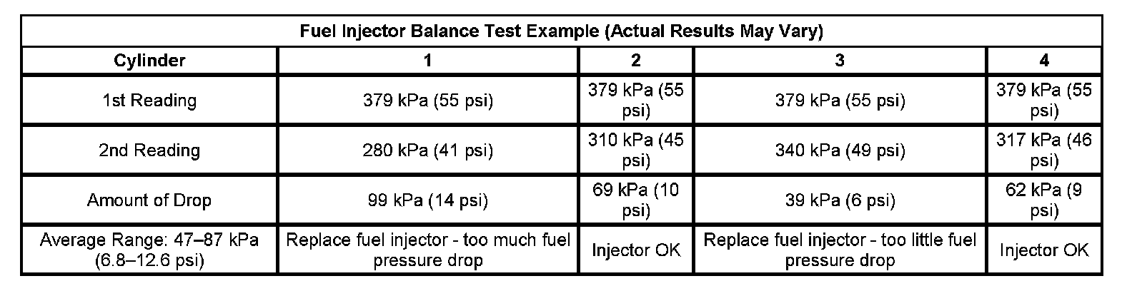 Fuel Injector Balance Text Example (Actual Results May Vary):