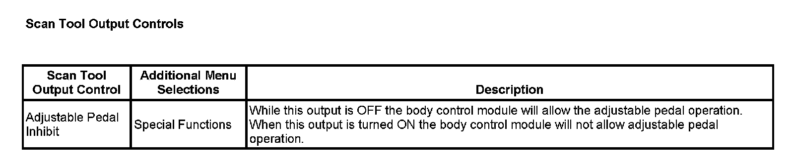 Scan Tool Output Controls: