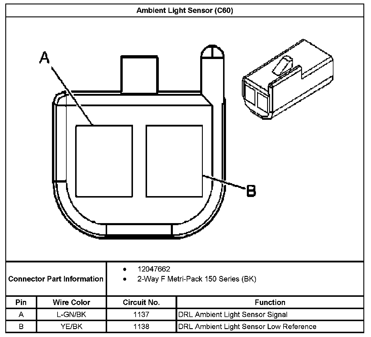 Ambient Light Sensor (With RPO Code C60):