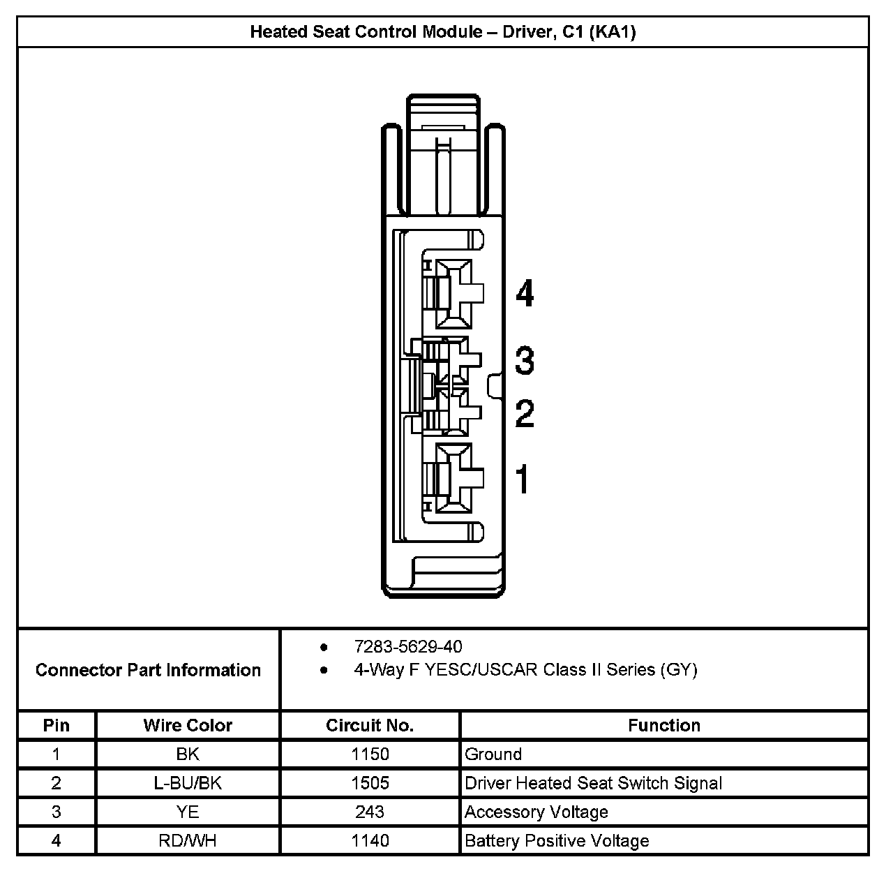 Heated Seat Control Module - Driver, C1 (With RPO Code KA1):