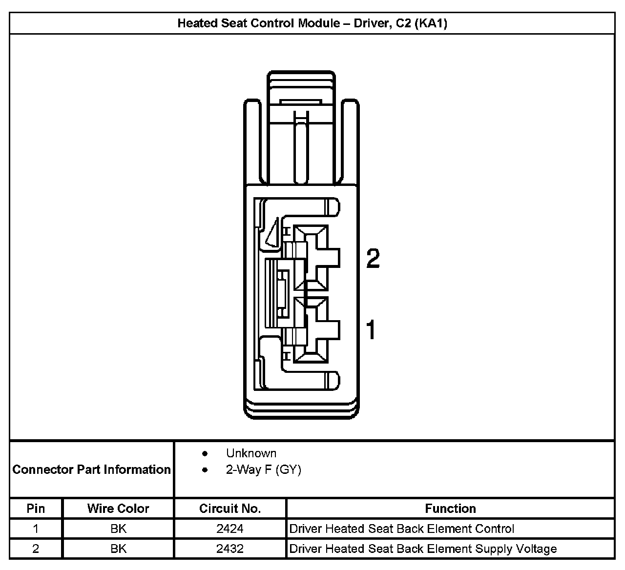 Heated Seat Control Module - Driver, C2 (With RPO Code KA1):