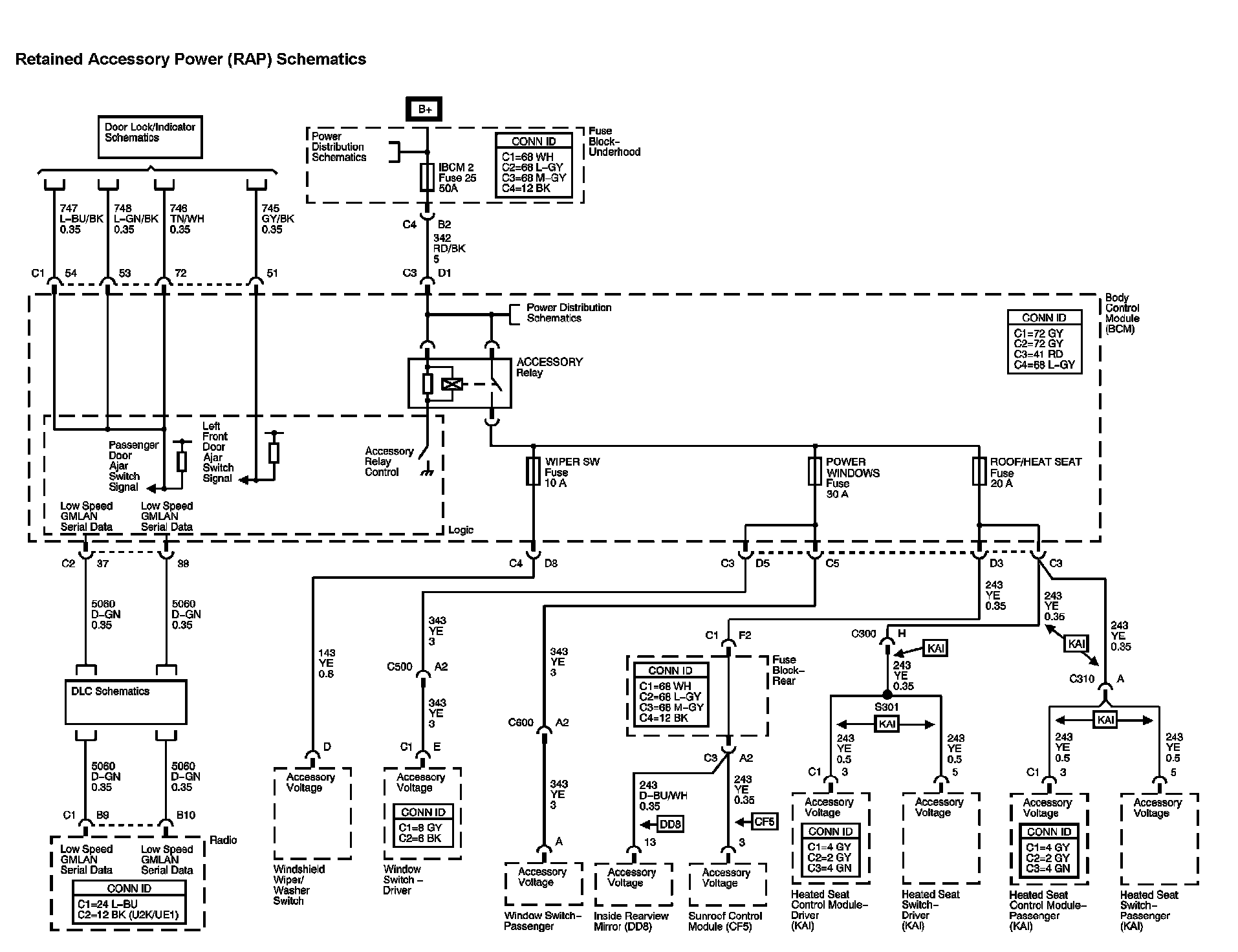 The locations for the Connectors, Grounds, Splices, and Grommets shown within these diagrams can be found via their numbers at Vehicle Locations.