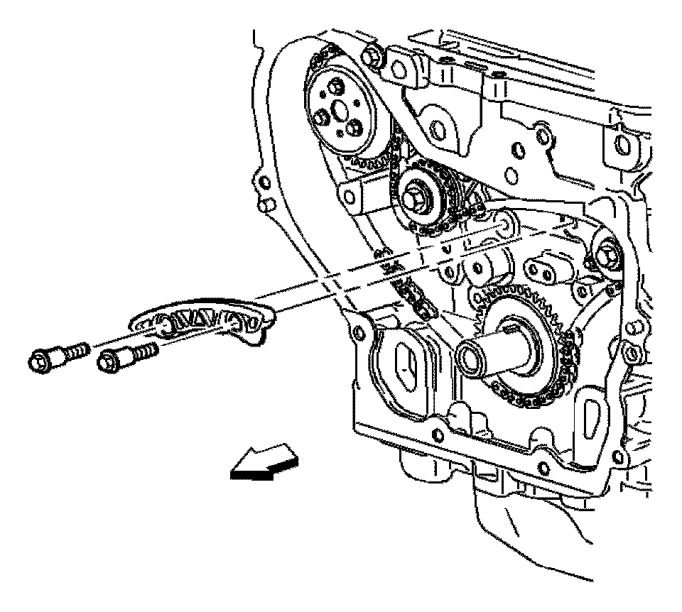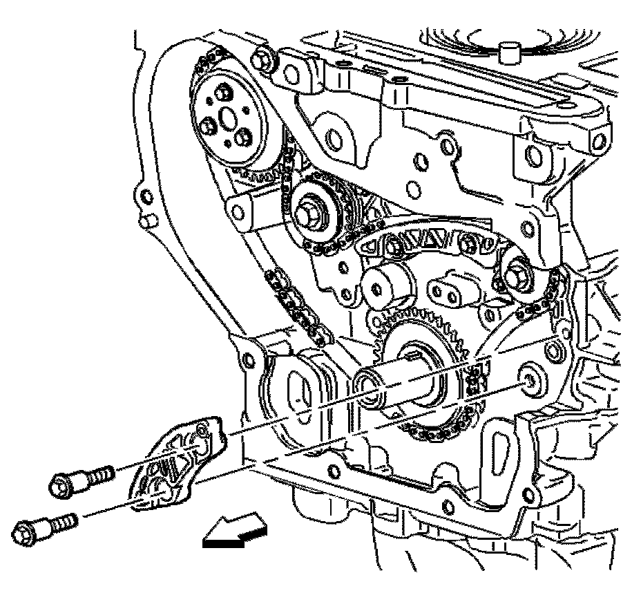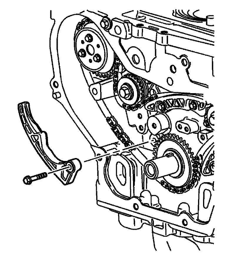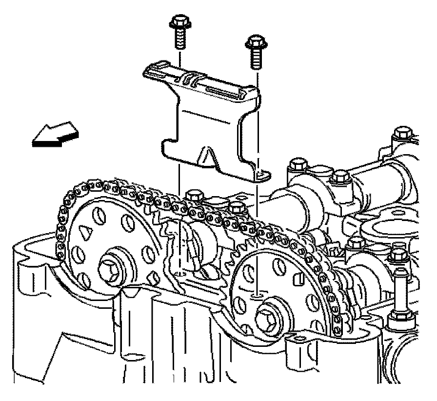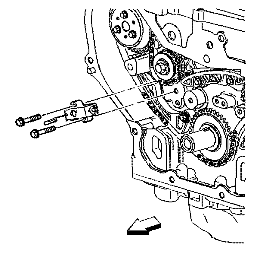 Important: The timing chain tensioner must be removed to unload chain tension before the timing chain is removed. If not removed, the timing chain will become cocked and it will be difficult to remove.