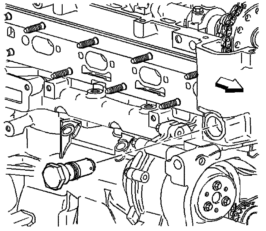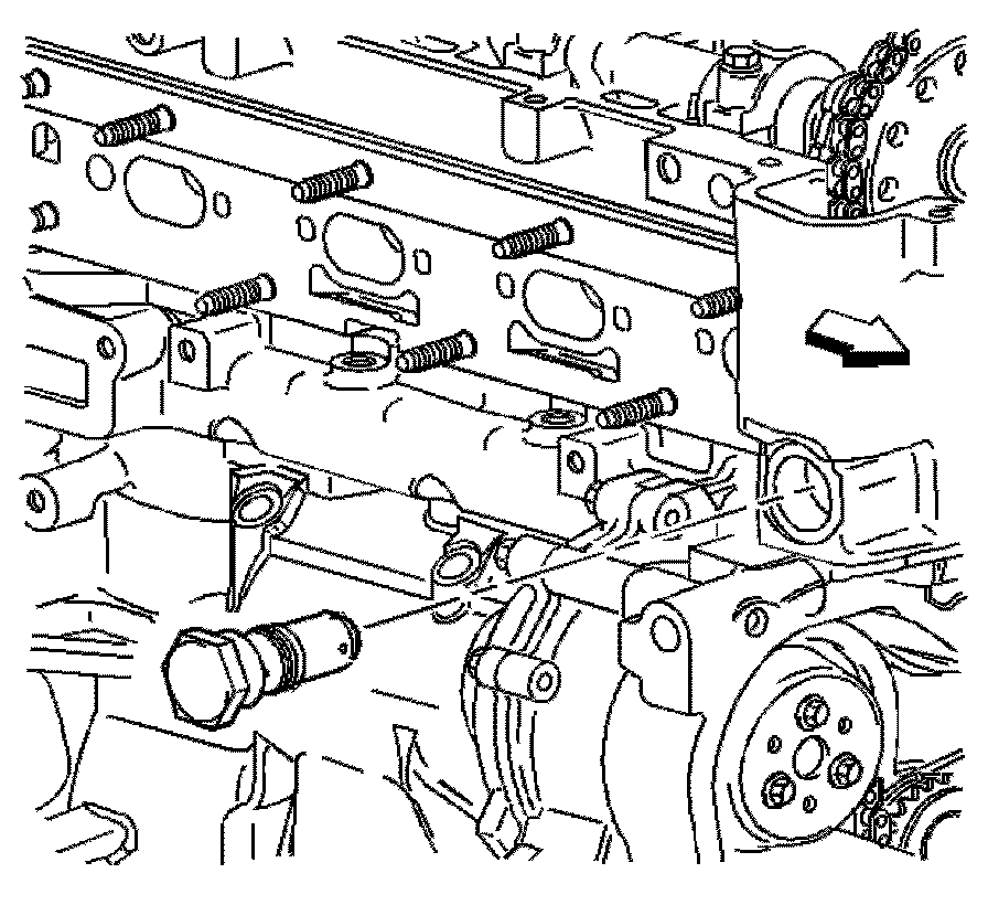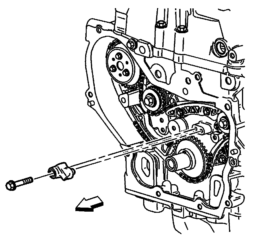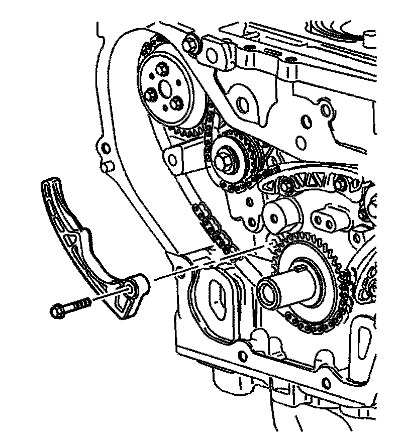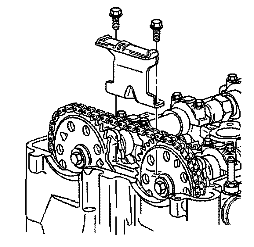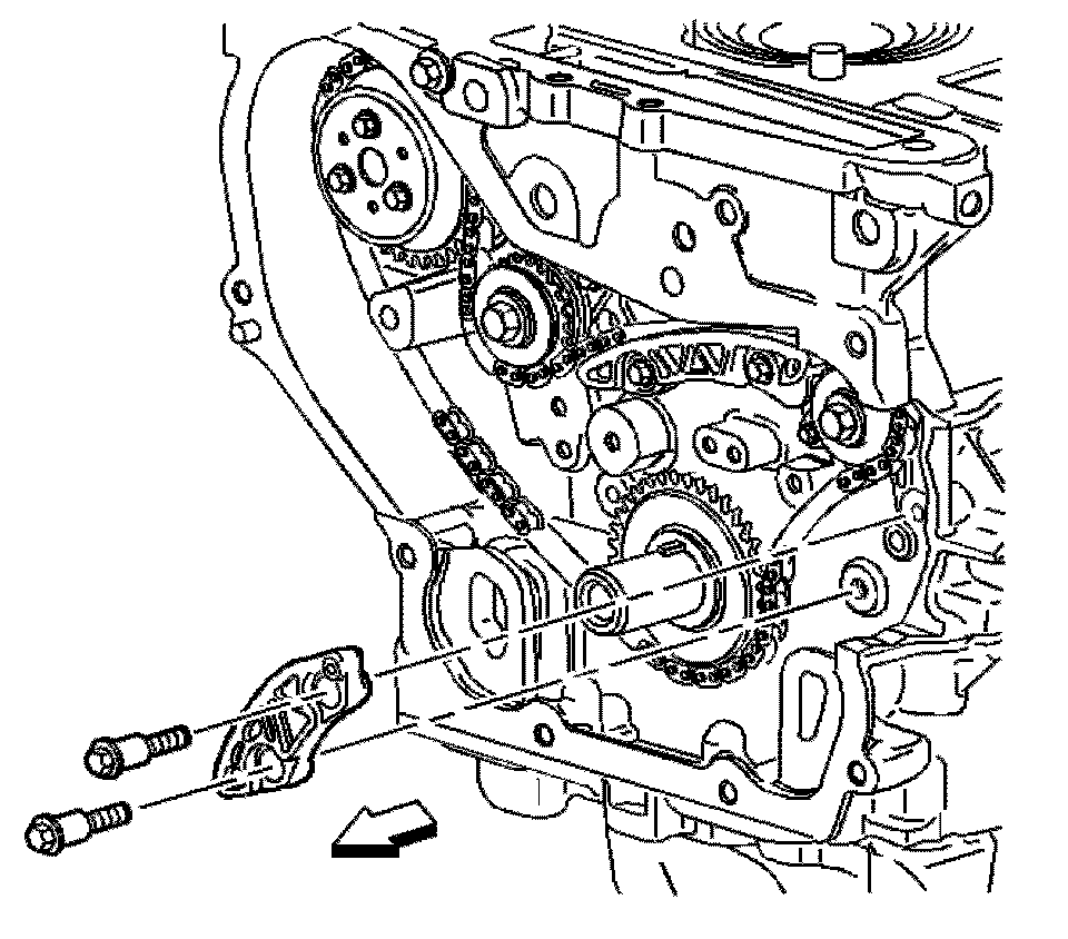 Important: The timing chain tensioner must be removed to unload chain tension before the timing chain is removed. If not removed, the timing chain will become cocked and it will be difficult to remove.