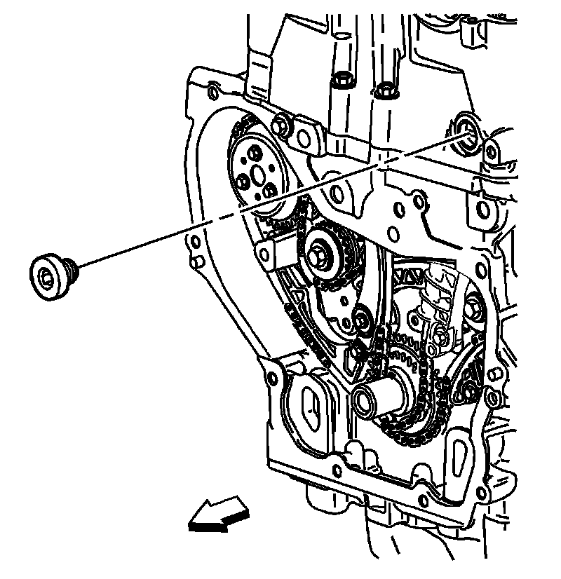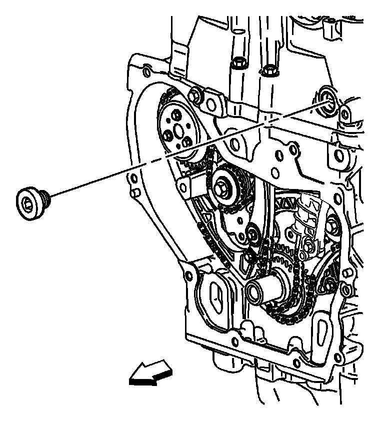 26. Apply sealant compound to thread and install the timing chain guide bolt access hole plug. Refer to Sealers, Adhesives, and Lubricants for the correct part number.
