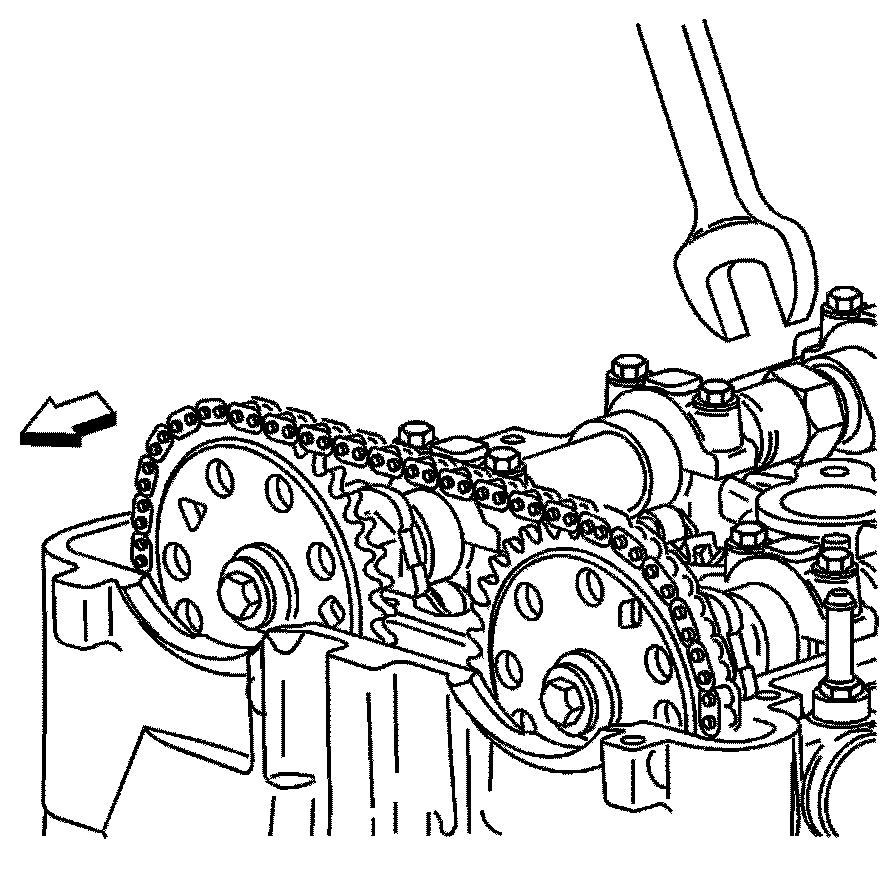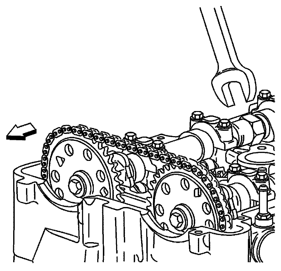 11. Use a 24 mm wrench to hold the camshafts from turning.