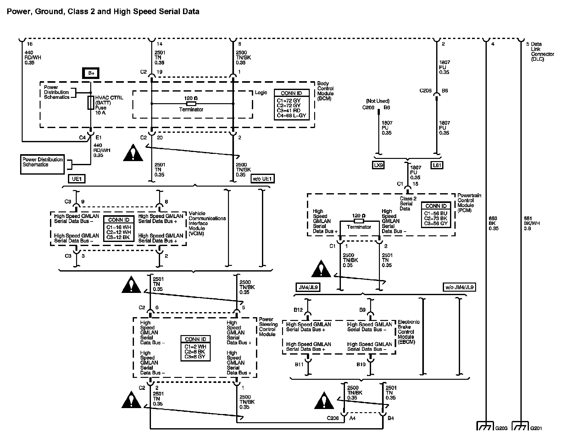 Locations: The locations for the Connectors, Grounds, Splices, and Grommets shown within these diagrams can be found via their numbers at Vehicle Locations. Locations