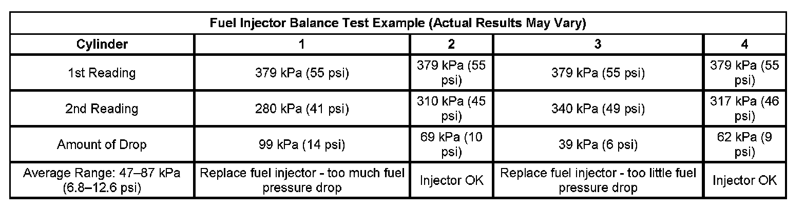 Fuel Injector Balance Test Example(Actual Results May Vary):